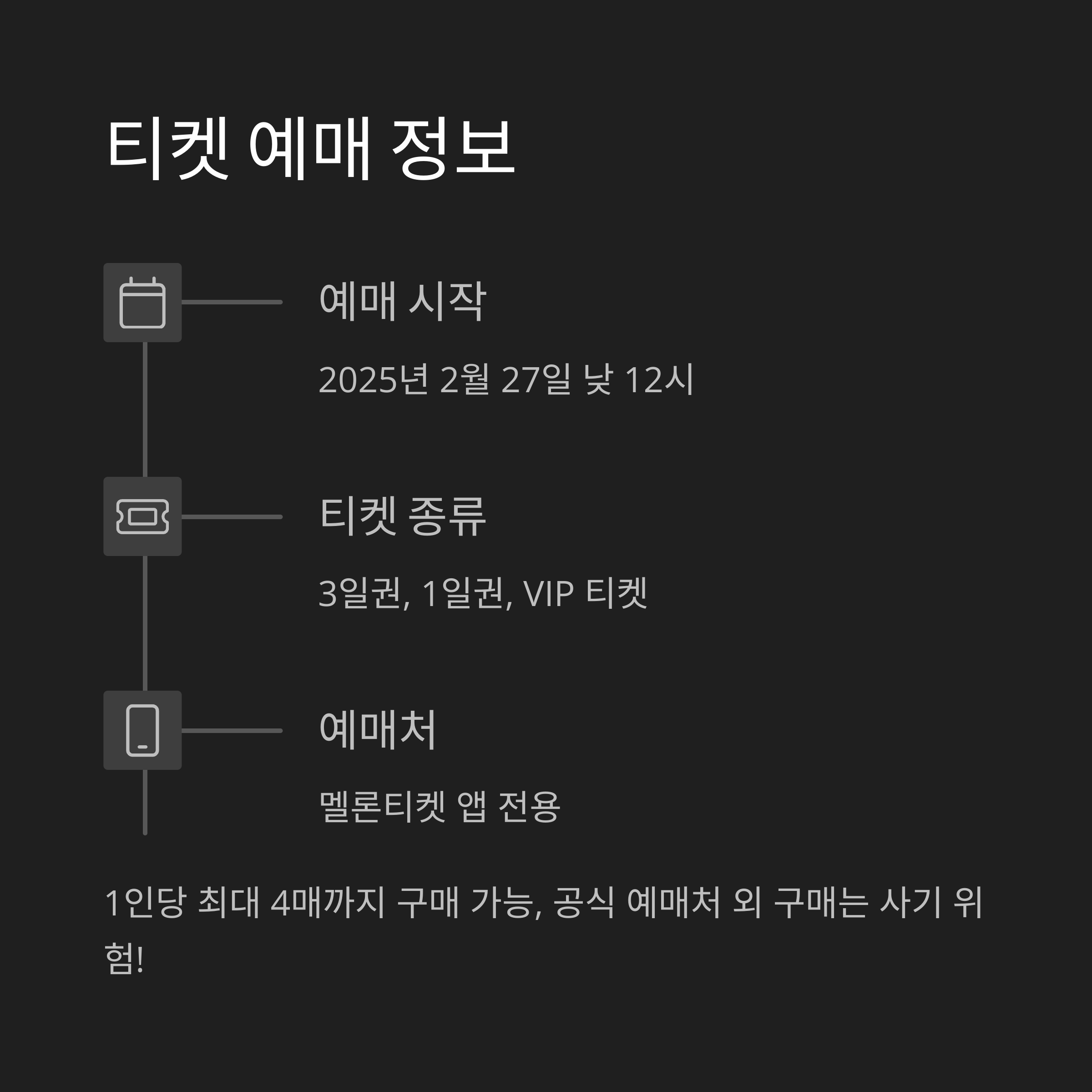 - VIP 티켓: 프론트존 우선 입장 및 기념품 제공