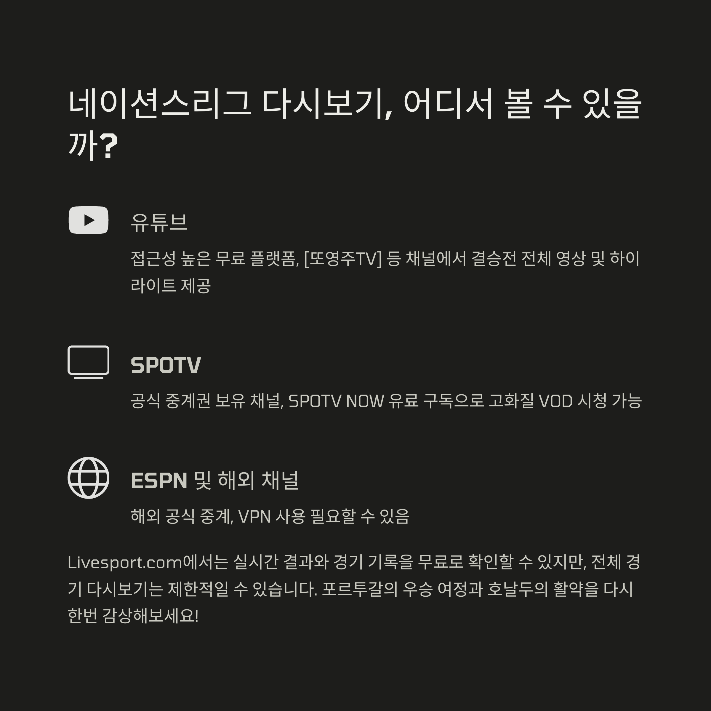 Q5. 네이션스리그 결승전 다시 보기는 어디서 가능한가요?