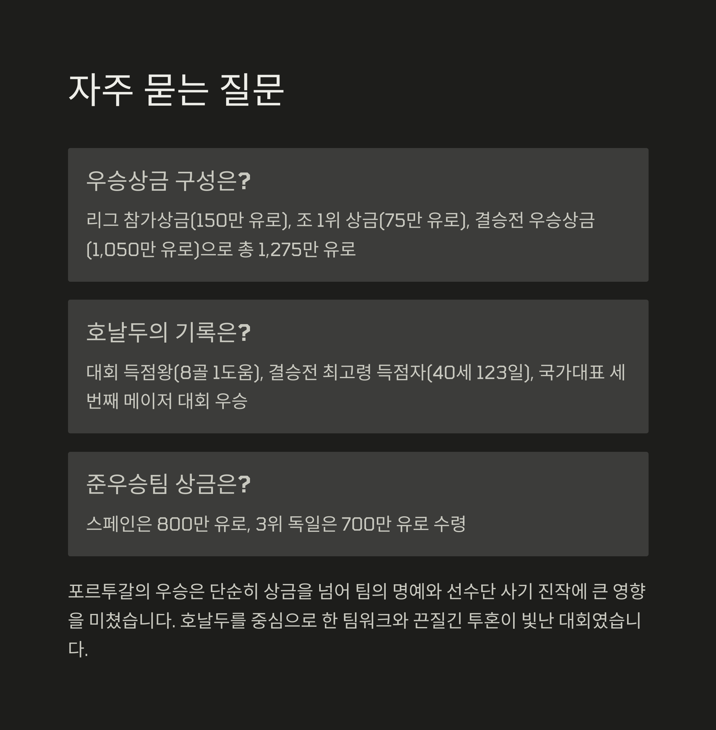 Q2. 포르투갈이 우승한 주요 요인은 무엇인가요?