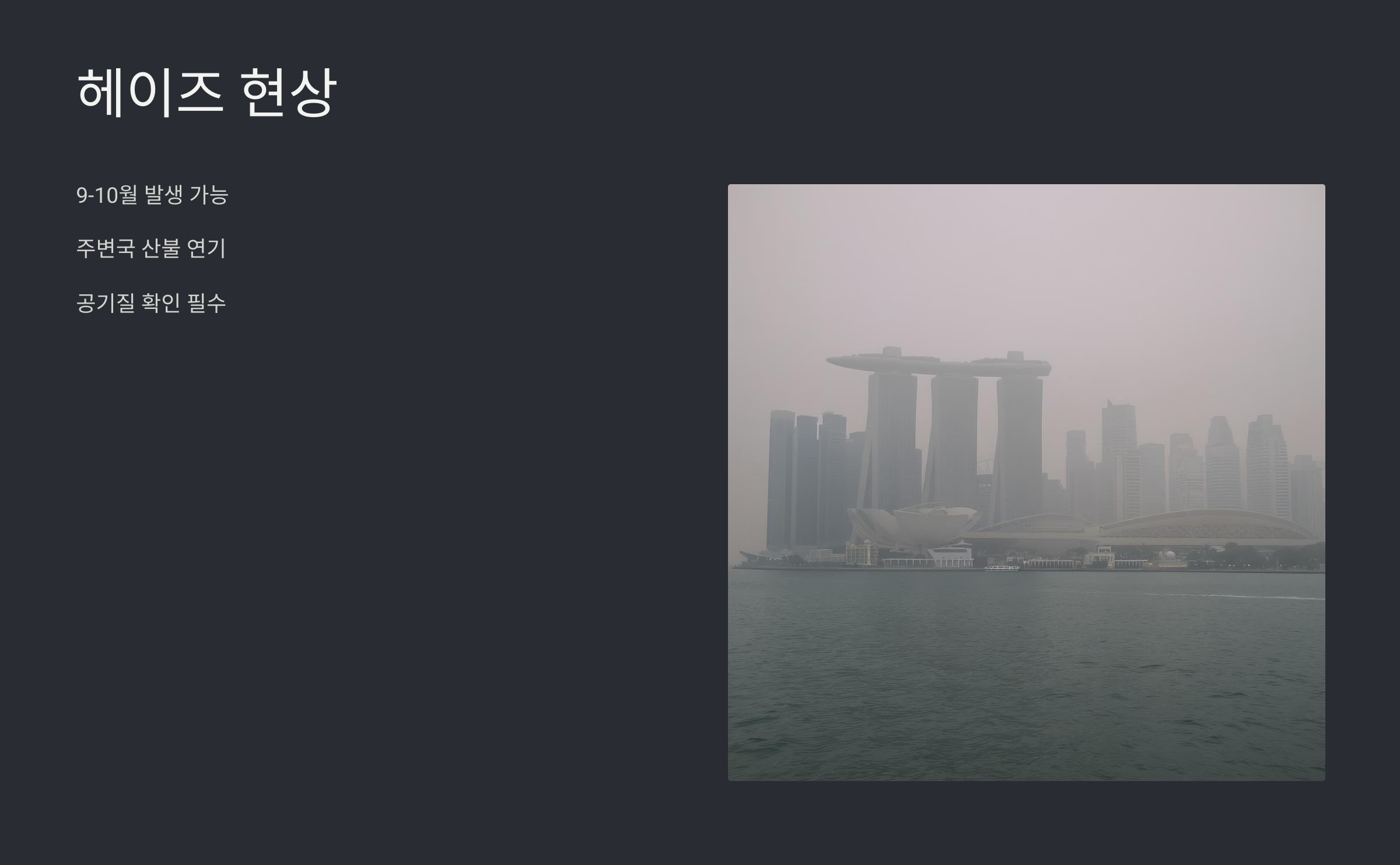 Q4: 싱가포르 헤이즈는 어떤 현상이고, 어떻게 대비해야 하나요?