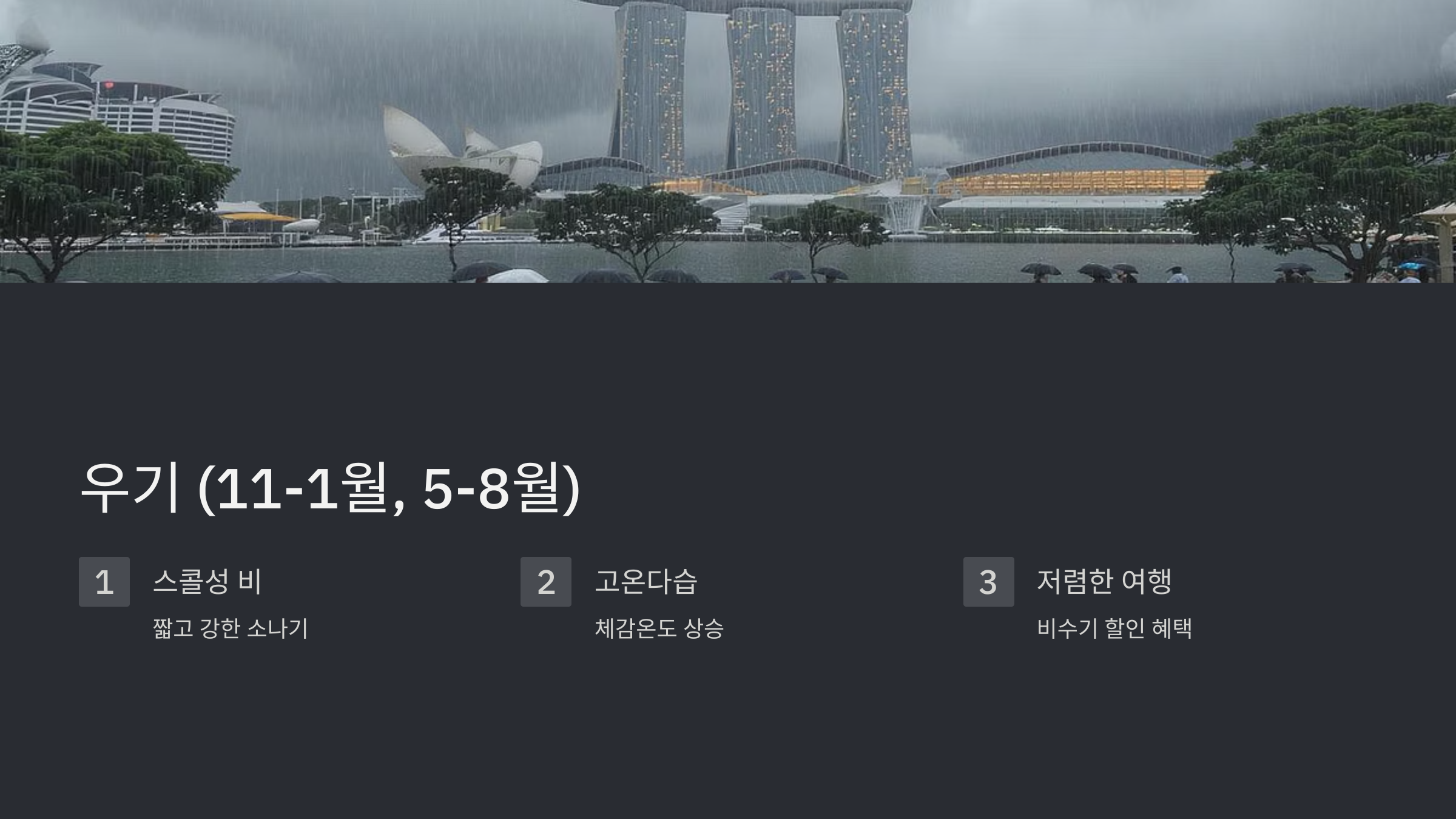 싱가포르, 사계절 없이 언제든 괜찮을까?