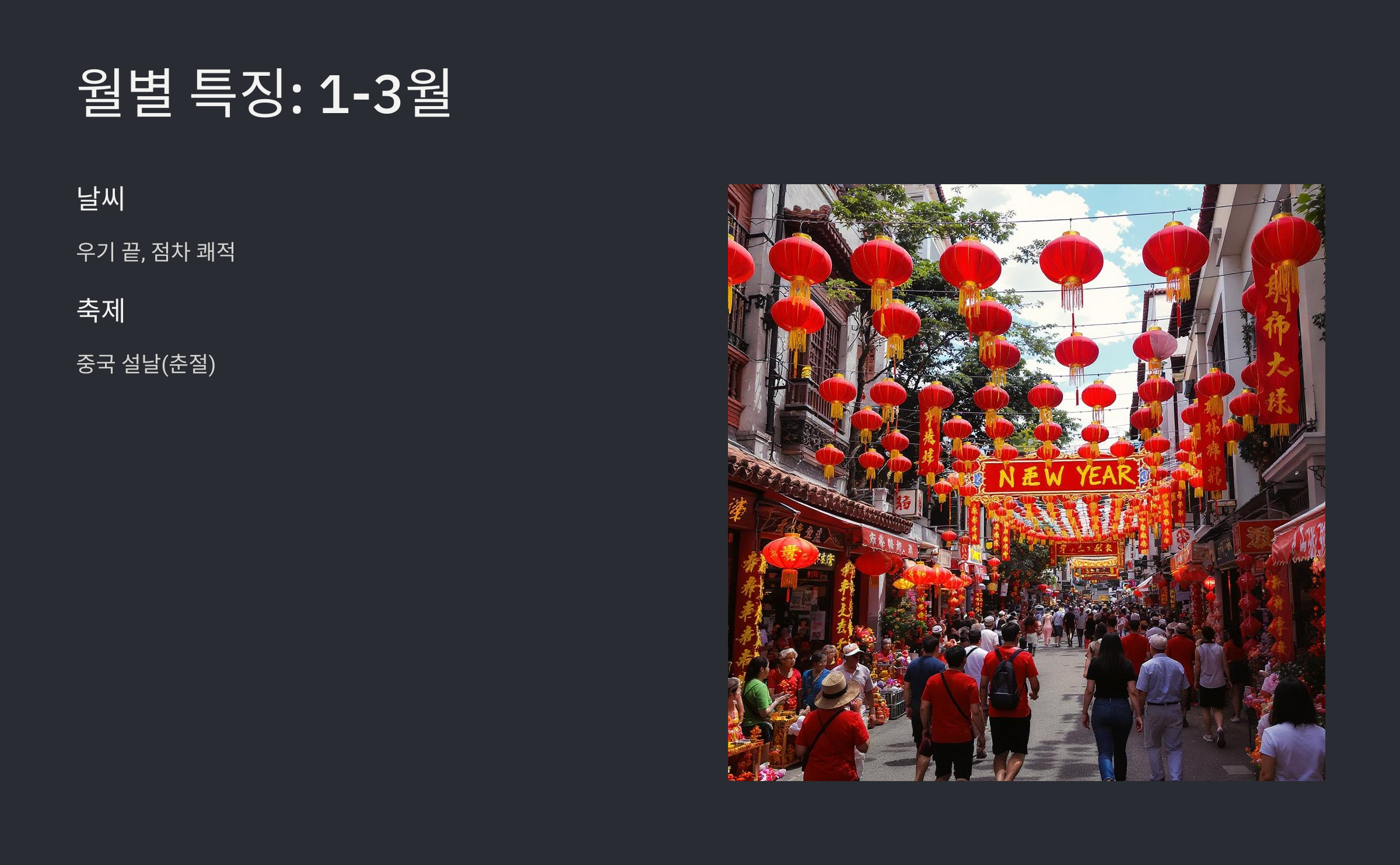 1월 - 3월: 상대적 쾌적함과 축제