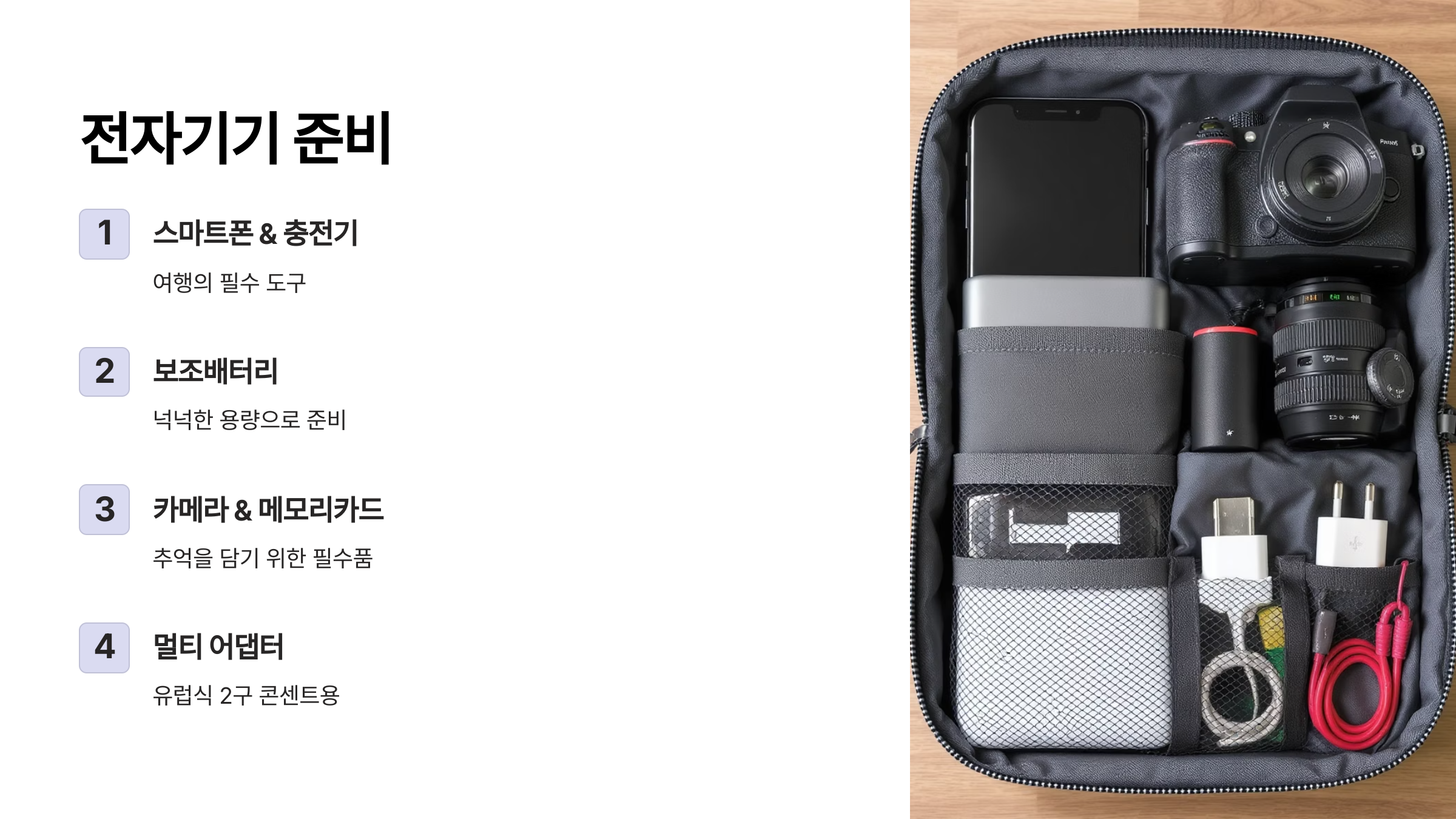 스마트폰, 카메라, 보조배터리는 필수 중의 필수!