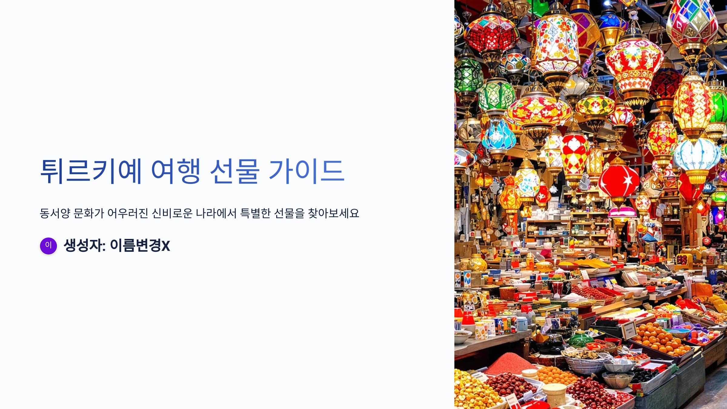"튀르키예 여행 가서 뭘 사 와야 할지 막막하시죠? 여행 선물, 정말 고민 많이 되실 거예요. 특히 사랑하는 사람들에게 줄 선물을 고를 때면 더 신중해지고요. 저도 그랬답니다. 하지만 걱정 마세요! 제가 직접 경험하고 발품 팔아 알아낸 튀르키예 여행 선물 튀르키예 여행 선물 고르는 꿀팁들을 모두 알려드릴게요. 이 글만 보시면 실패 없는 쇼핑을 하실 수 있을 거예요! 그럼 저와 함께 튀르키예 선물 쇼핑의 세계로 떠나볼까요?