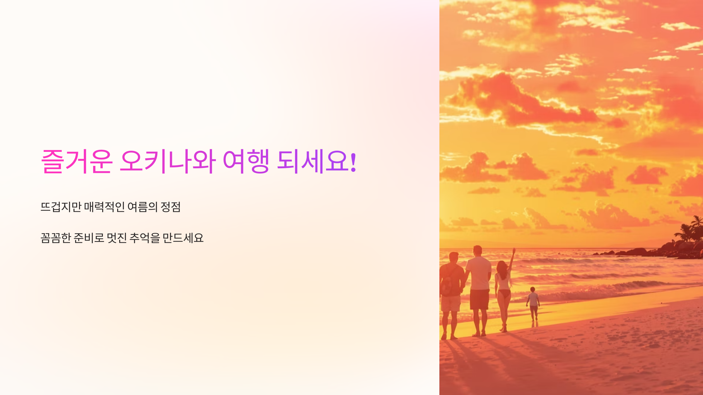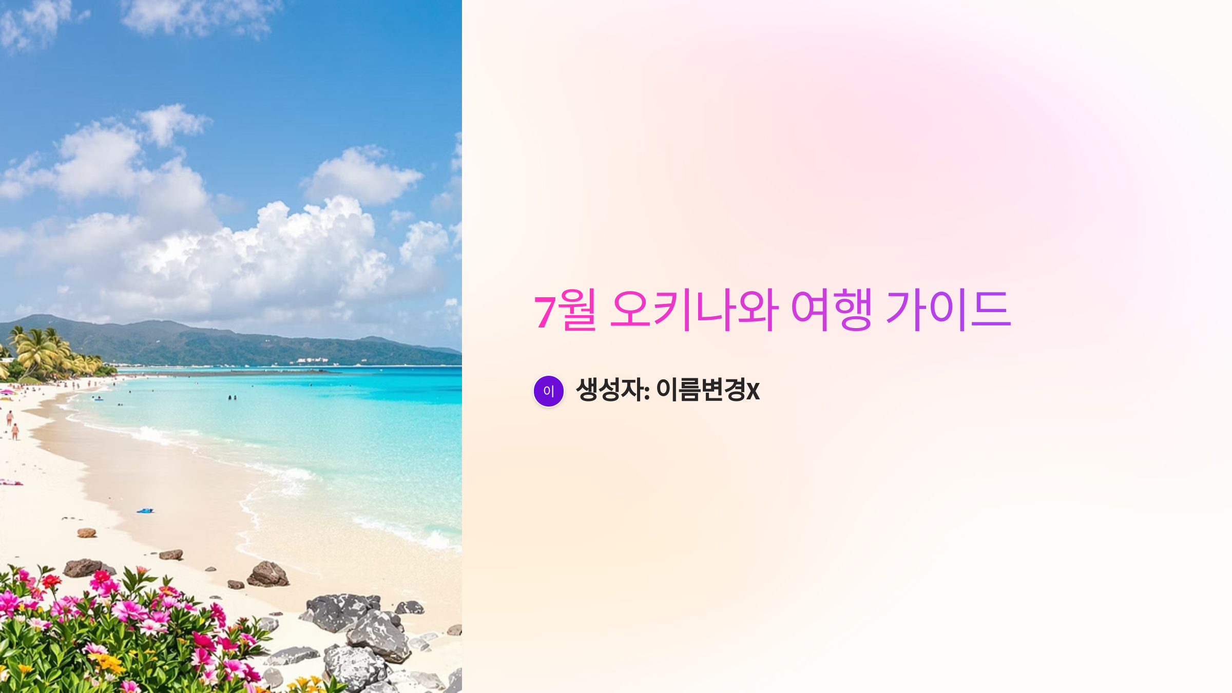 7월 오키나와는 뜨겁지만, 그만큼 매력적인 여름의 정점을 경험할 수 있는 곳이에요. 미리 날씨 정보를 확인하고, 준비물을 꼼꼼하게 챙겨서 떠난다면 분명 후회하지 않을 멋진 추억을 만들 수 있을 거예요. 이 글이 여러분의 오키나와 여행 준비에 조금이나마 도움이 되었으면 좋겠네요! 즐거운 여행 되세요! ✨