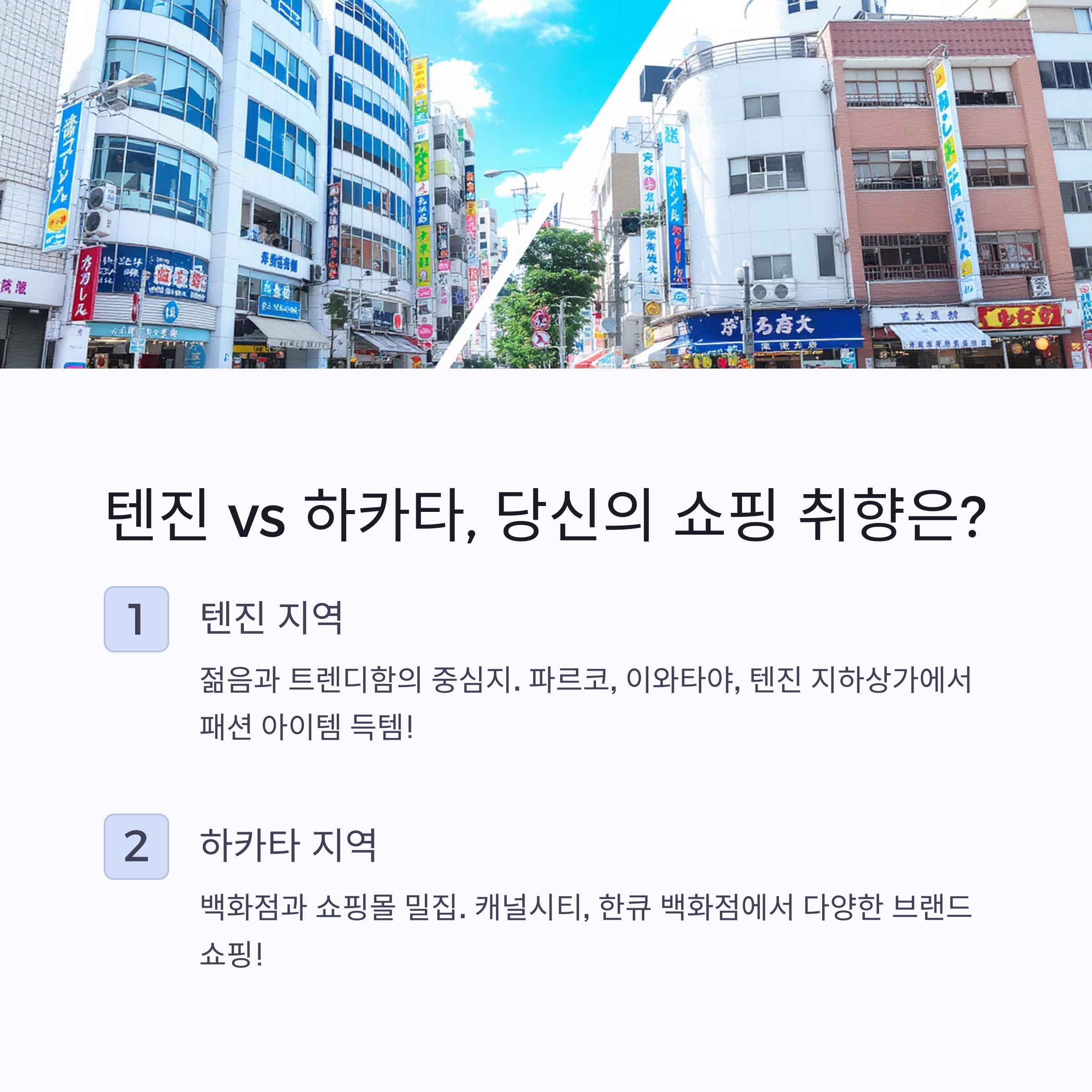 하카타 vs 텐진, 당신의 쇼핑 취향은?