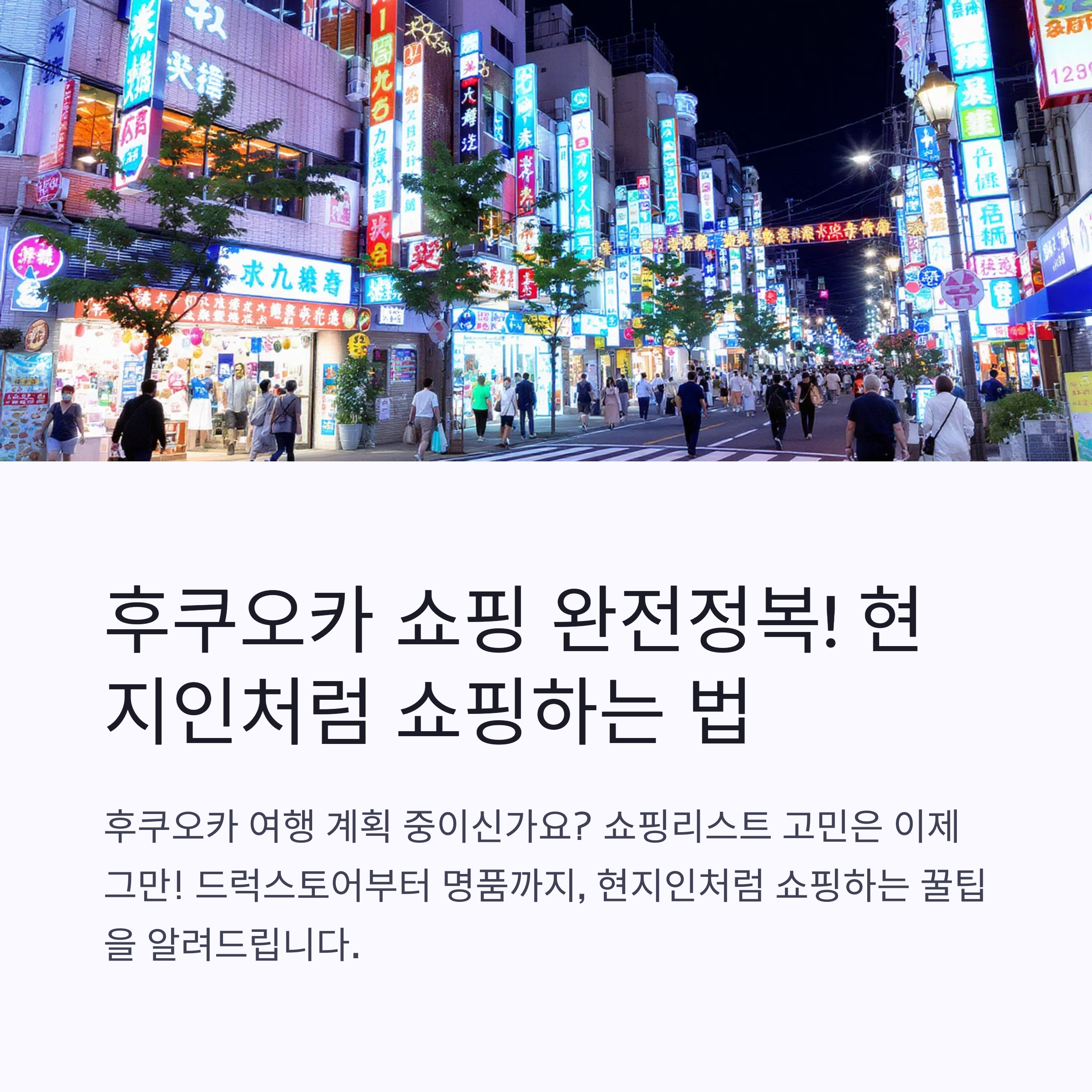 "으앙, 후쿠오카 여행 가는데 쇼핑리스트 뭘 채워야 할지 너무 고민돼요! 친구들은 다 이것저것 사 오던데, 막상 가려니 뭘 사야 할지 모르겠는 거 있죠? 괜히 어정쩡한 것만 사 오는 건 아닐까 걱정되고, 면세 혜택은 또 어떻게 받는지 복잡하기만 하고… 혹시 저만 이런 고민 하는 거 아니죠? 후쿠오카 쇼핑, 제대로 즐기고 싶다면 이 글에 주목해주세요! 제가 후쿠오카 쇼핑리스트 고민을 한 방에 해결해 드릴게요! 🛍️✨