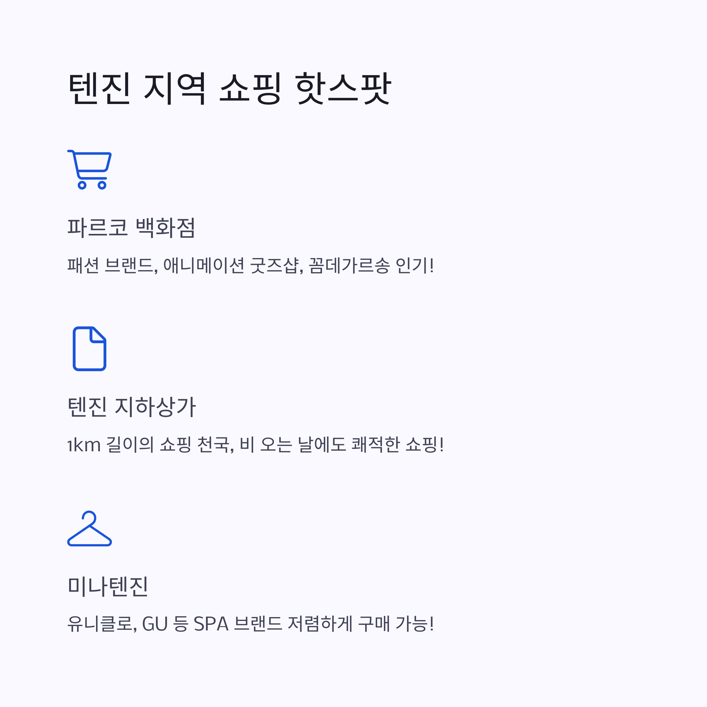 텐진 지역: 트렌디 쇼퍼들의 성지