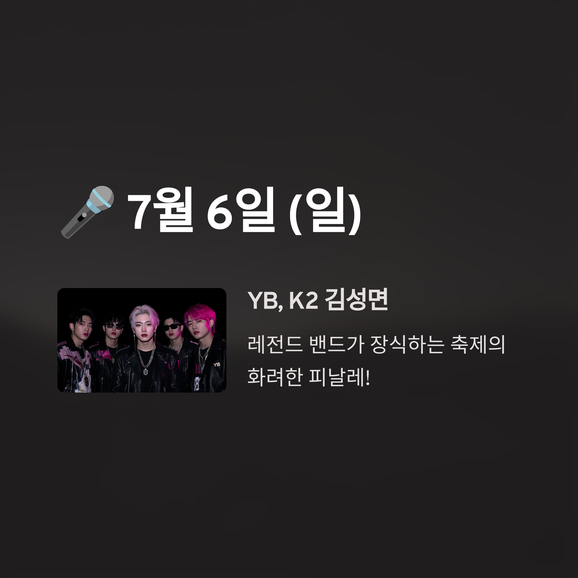 | 7월 6일 | K2 김성면, YB (윤도현 밴드) |