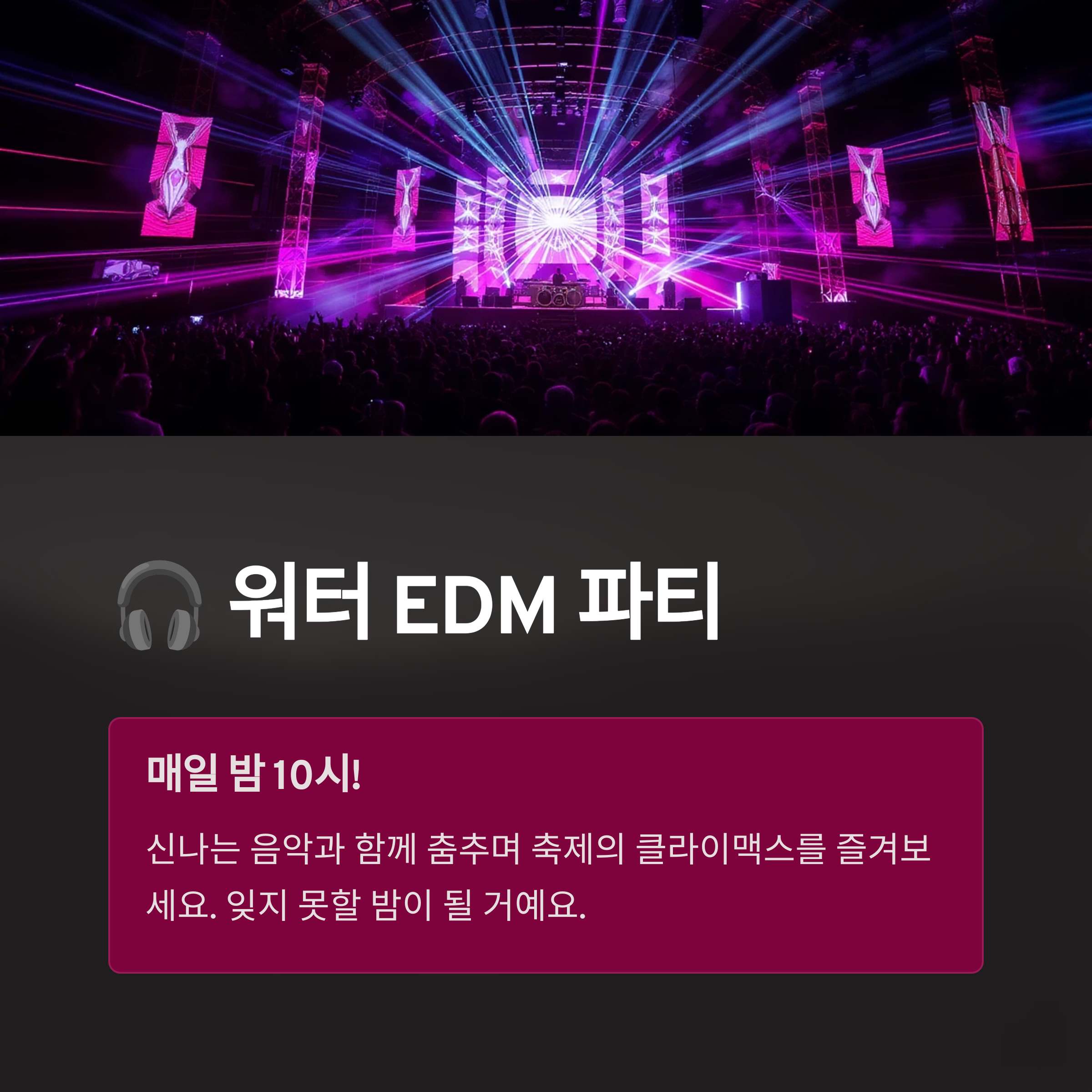 | 워터 EDM DJ 쇼 & 파티 | 매일 밤 10시부터 화려한 EDM 쇼 |