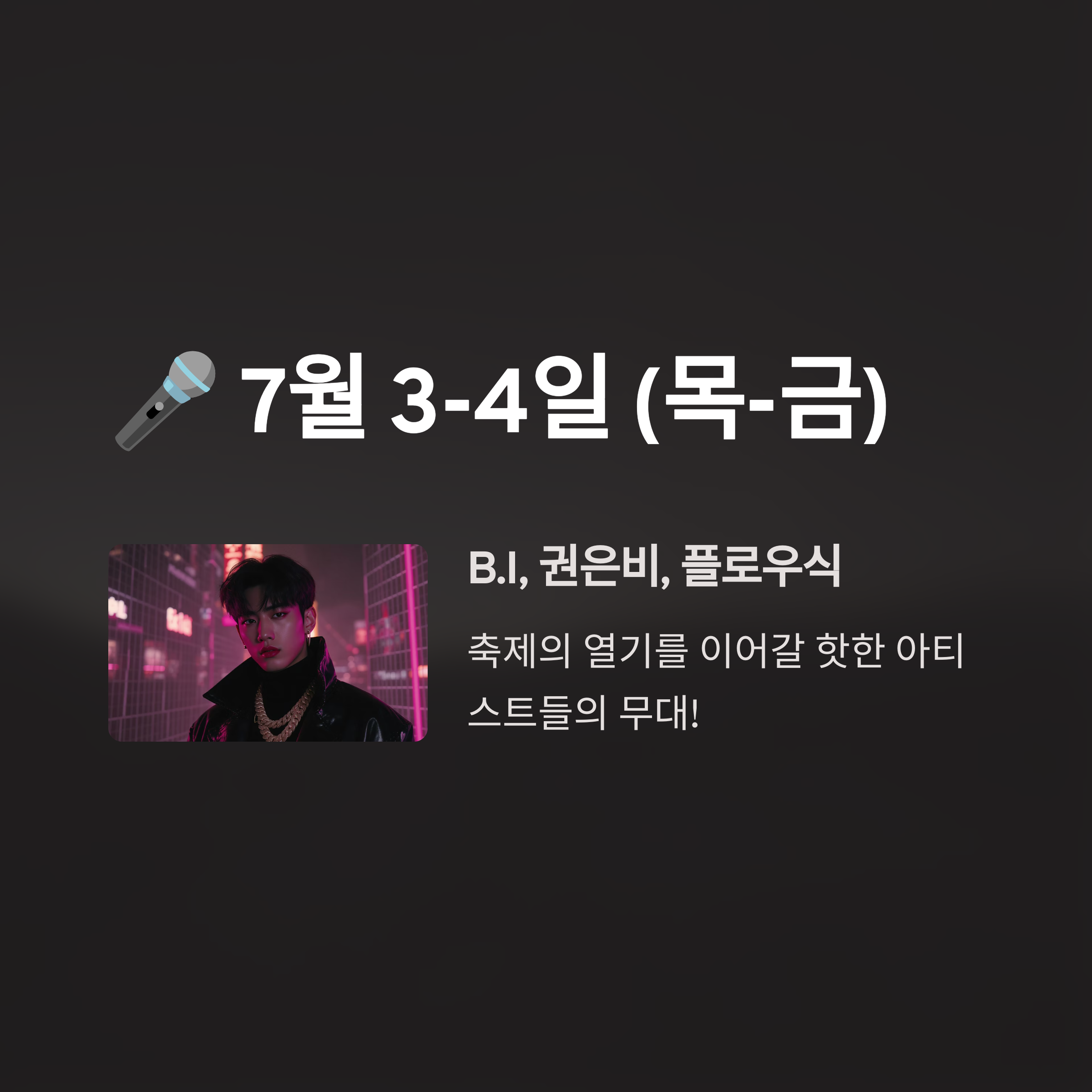 | 7월 3일 | 플로우식, B.I |