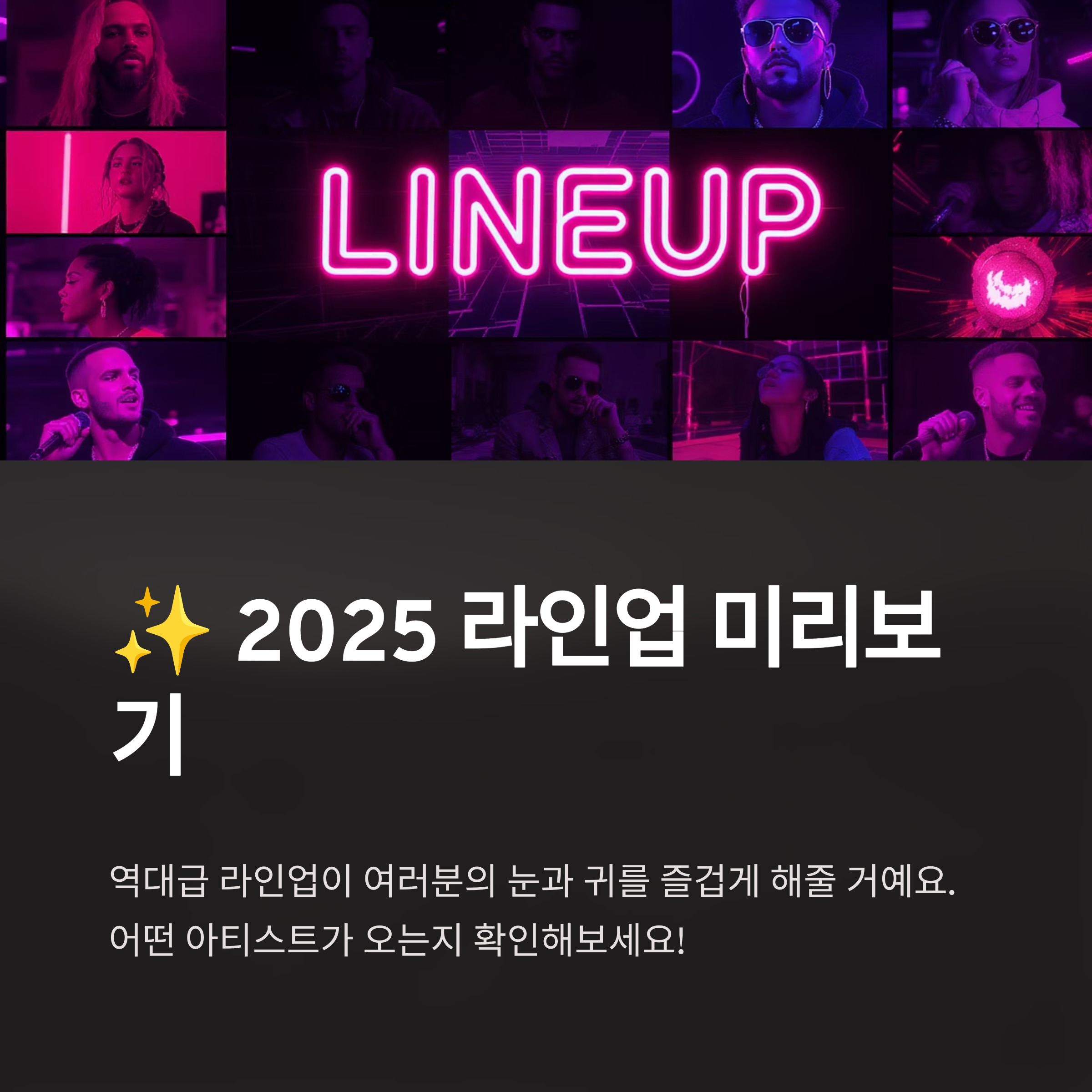 이 외에도 딘딘, 닛몰캐쉬 & 일오팔 등 다양한 아티스트들이 매일 밤을 뜨겁게 달굴 예정이에요. 2022년에는 박명수, 자이언티 등이 출연했었다고 하니, 매년 정말 핫한 아티스트들이 방문하는 것 같아요. 이번 2025년 축제는 뉴욕 타임스스퀘어에서도 홍보될 만큼 글로벌한 축제로 성장하고 있다고 하니, 더욱 기대가 됩니다.
