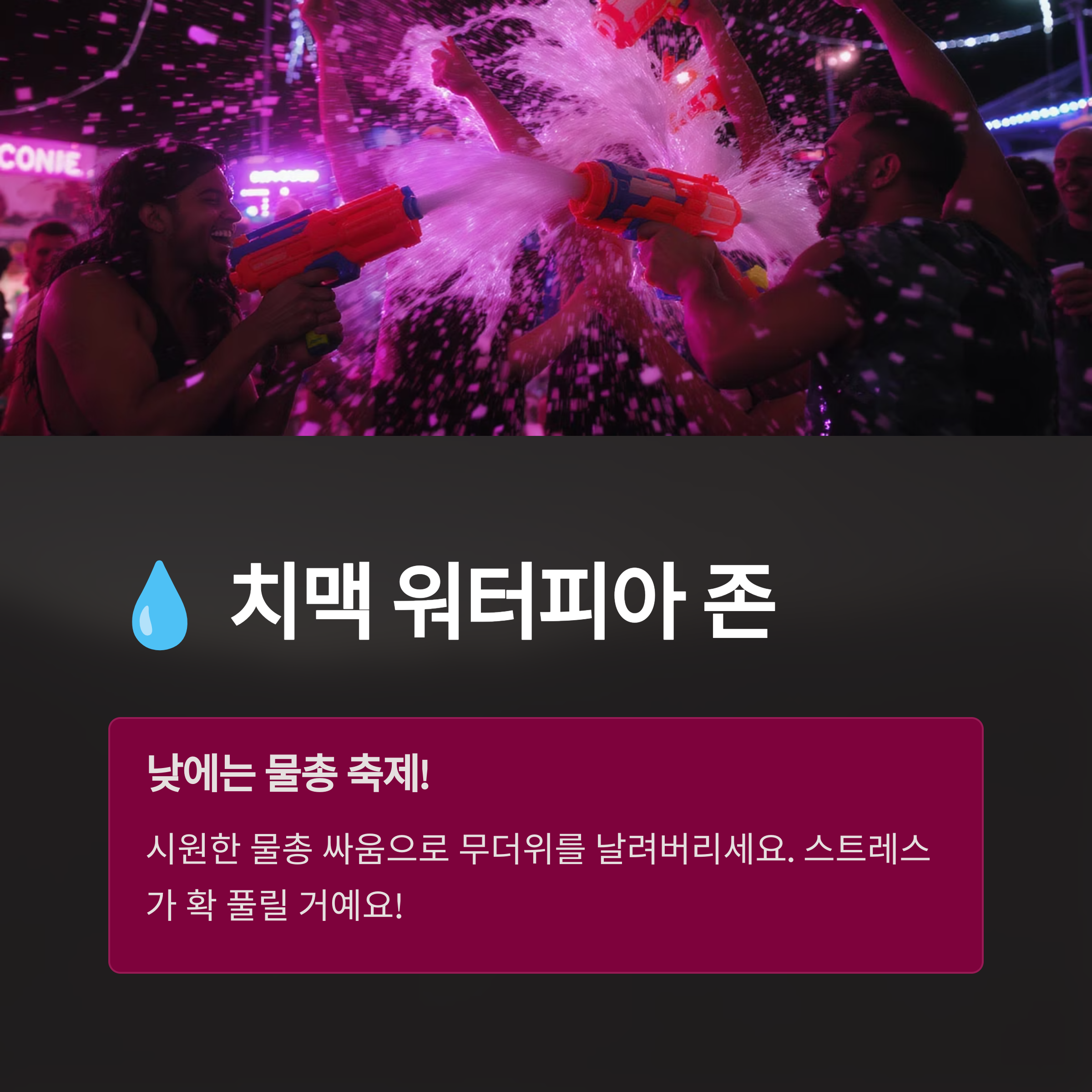 | 치맥 워터피아 존 | 낮 시간 물총 축제, 시원한 여름 즐기기 |