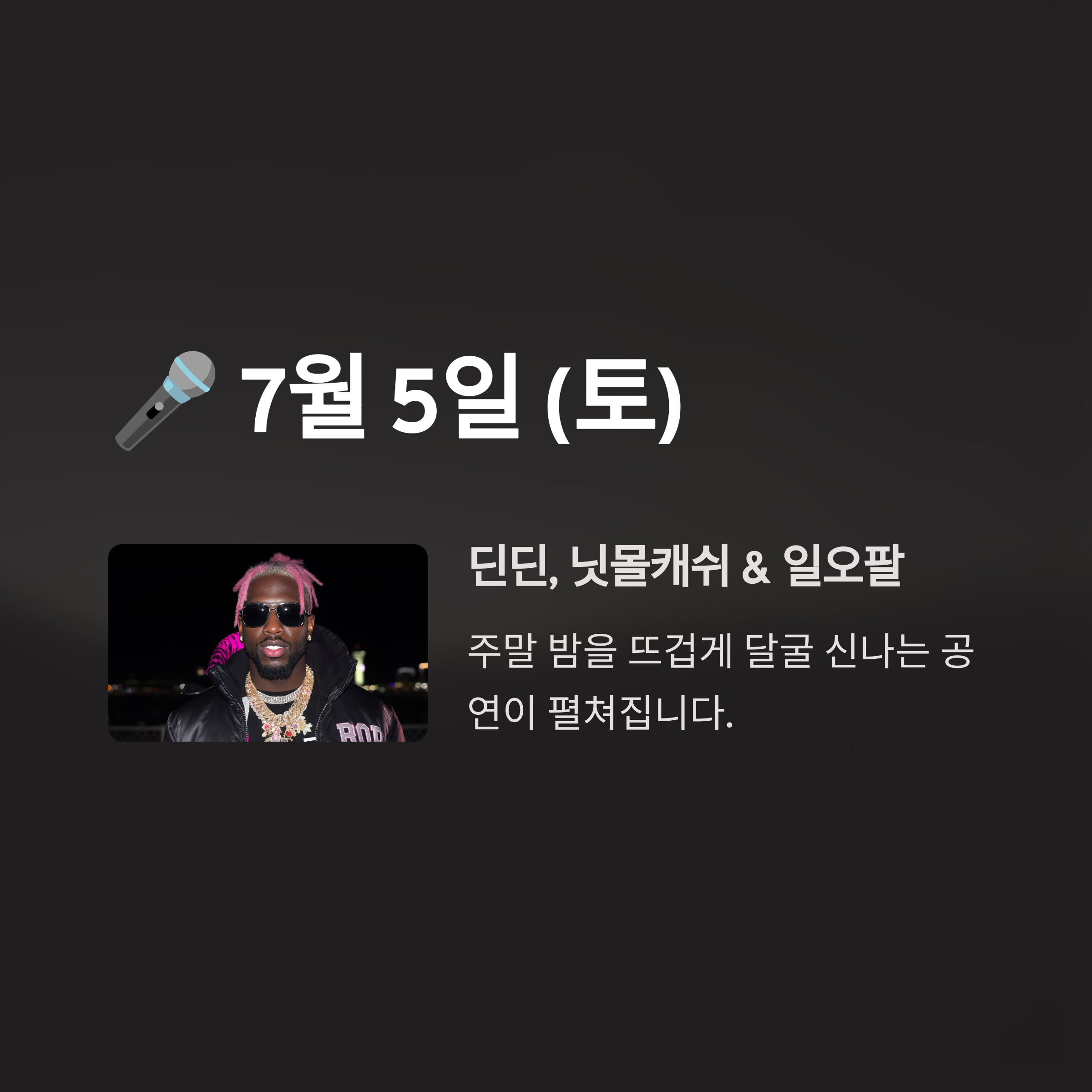 | 7월 5일 | 닛몰캐쉬 & 일오팔, 딘딘 |