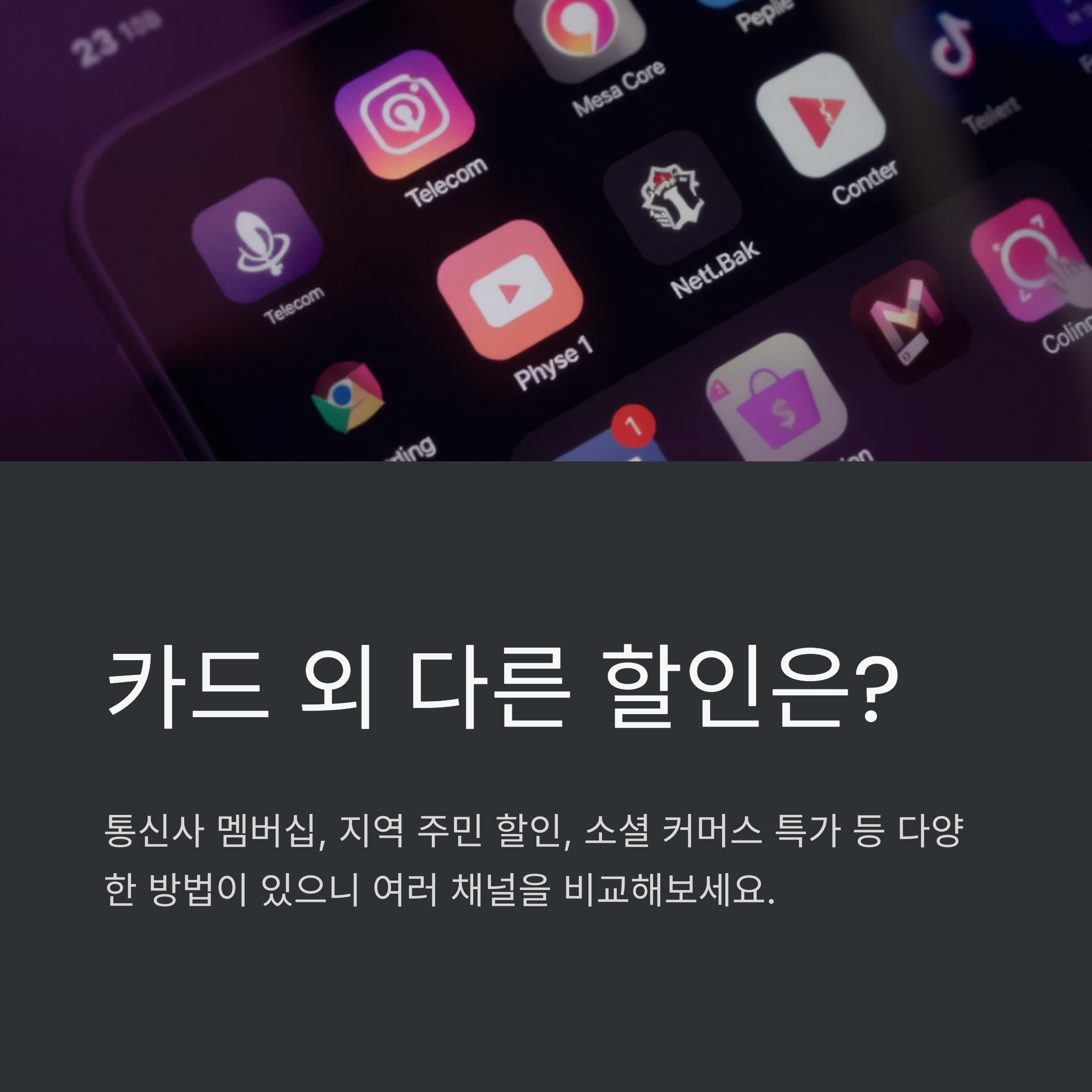 네, 카드 할인 외에도 통신사 멤버십 할인(SKT, KT, LG U+ 등)이나 지역 주민 할인, 투숙객 할인 등 다양한 방법이 있을 수 있어요. 또한, 소셜 커머스(쿠팡, 위메프 등)에서 시즌별 특가로 티켓을 판매하는 경우도 있으니, 여러 채널을 비교해보고 가장 저렴한 방법을 선택하는 것이 좋답니다.