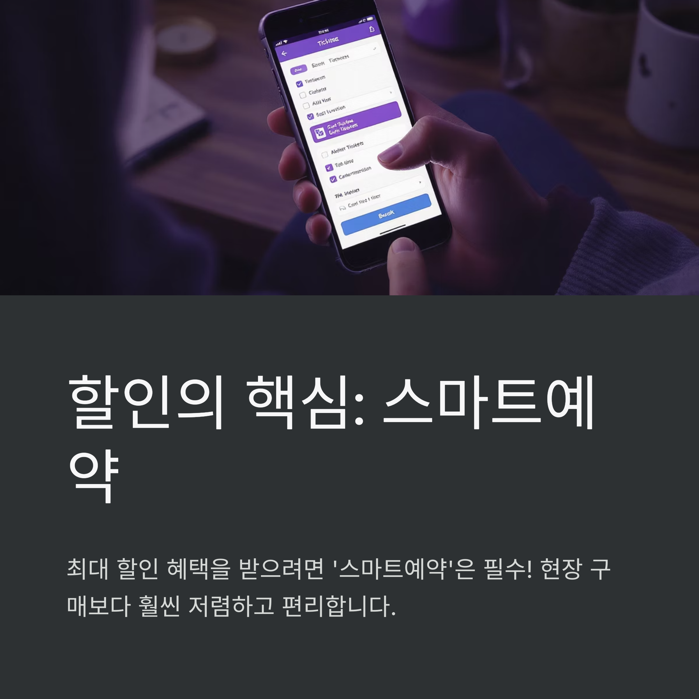 예약 과정에서 할인 혜택을 선택하는 부분이 있을 거예요. 여기서 본인이 소지한 제휴카드를 선택하고, 해당 카드로 결제를 진행하면 됩니다. 할인은 카드 명의자 본인에게만 적용되는 경우가 많으니, 이 점 유의해서 결제해야 해요. 현장 결제도 가능하지만, 스마트예약이 훨씬 더 높은 할인율을 제공하니 꼭 스마트예약을 이용하세요!