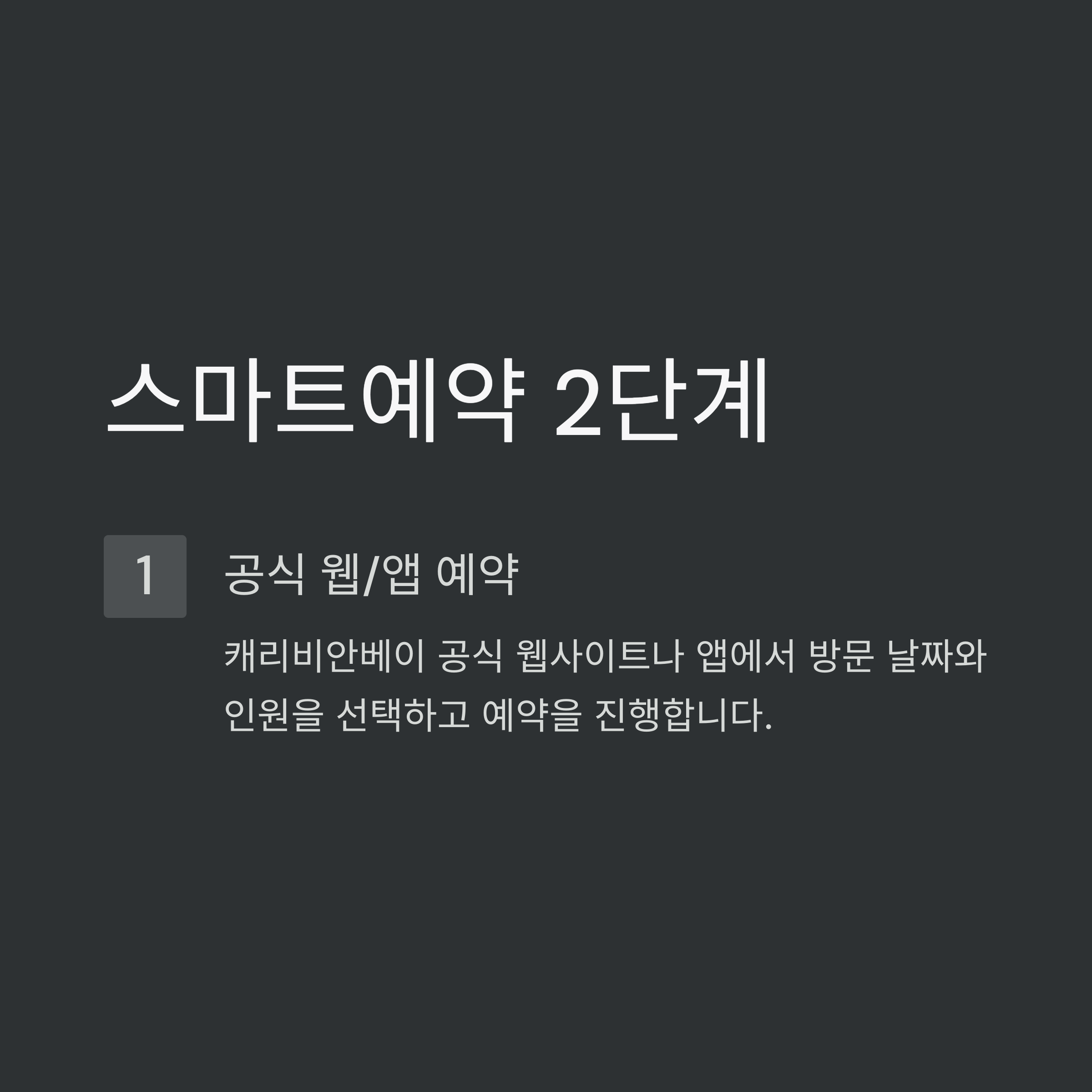 캐리비안베이 할인카드 혜택을 최대로 받기 위해서는 '스마트예약'이 필수라고 말씀드렸죠? 이제부터 스마트예약을 어떻게 진행하는지 차근차근 알려드릴게요. 이 방법만 따라 하면 할인받는 거 어렵지 않아요!