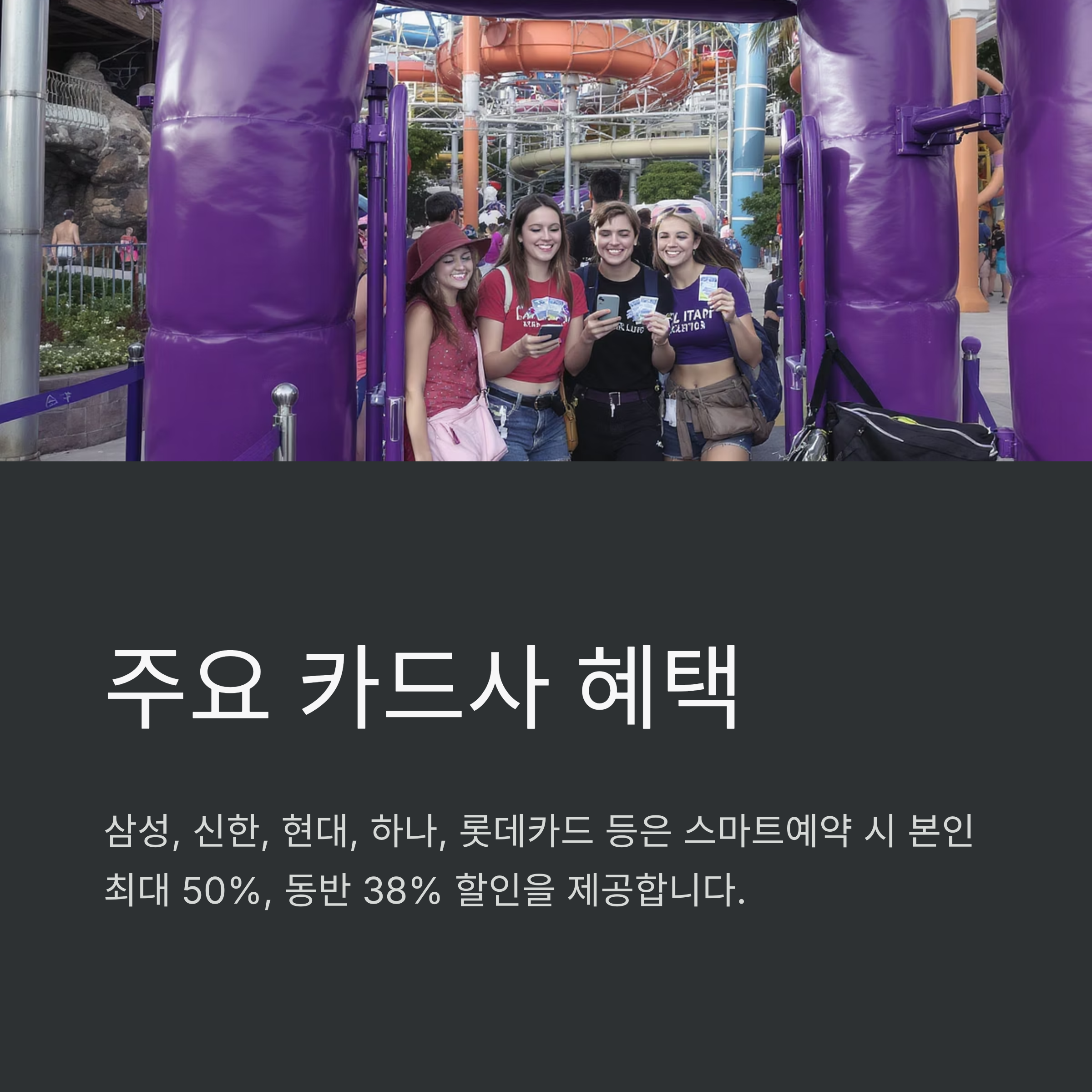 무더운 여름, 시원한 물놀이를 즐기기 위해 많은 분들이 찾는 캐리비안베이! 하지만 정가로 입장권을 구매하면 비용 부담이 만만치 않죠? 이럴 때 유용한 것이 바로 할인 제휴카드인데요. 다양한 카드사와 제휴를 통해 최대 55% 할인까지 받을 수 있어, 제대로 활용하면 입장료를 크게 절감할 수 있답니다.