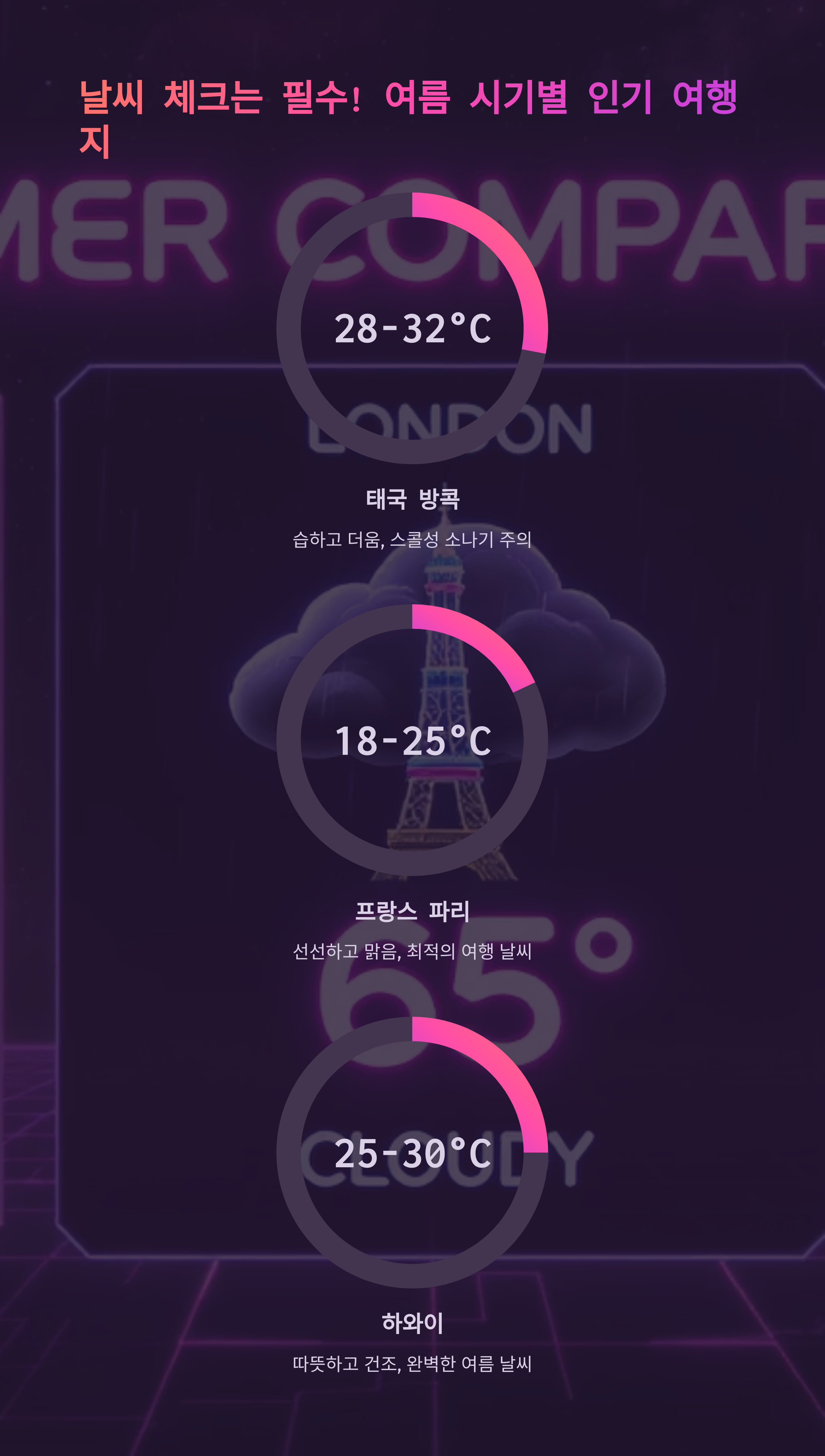 | 프랑스 파리 | 18-25 | 50-70 | 선선하고 맑음 |