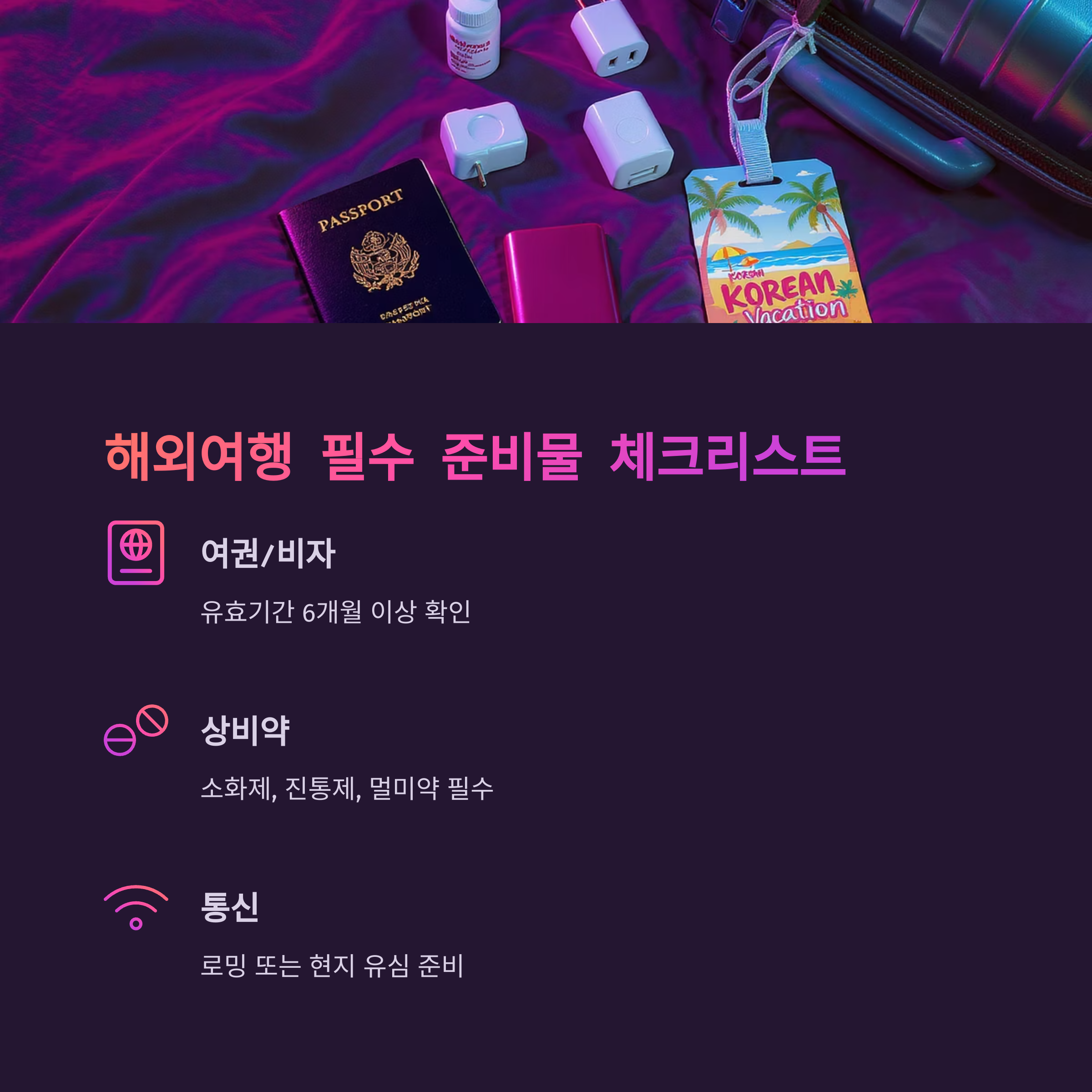 Q5: 해외여행 시 챙겨야 할 필수 상비약 리스트는?