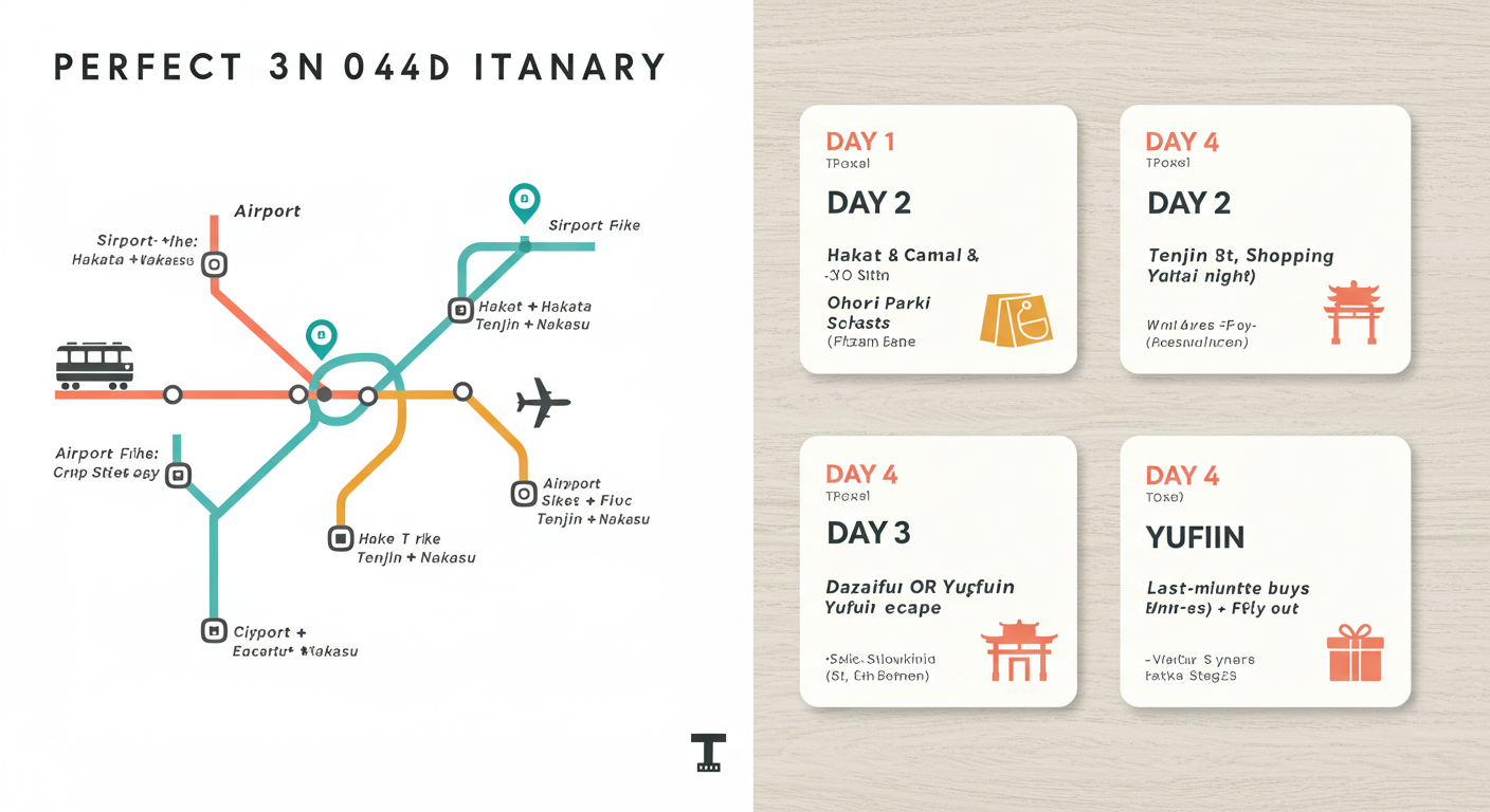 자, 이제 본격적으로 후쿠오카 3박4일 자유여행 일정을 짜볼까요? 제가 추천하는 이 코스는 후쿠오카의 핵심 스팟들을 알차게 둘러보면서도 너무 빡빡하지 않게, 여유와 낭만을 즐길 수 있도록 구성했어요. 물론 이 코스를 기본으로 취향에 맞게 자유롭게 변경하셔도 좋아요!
