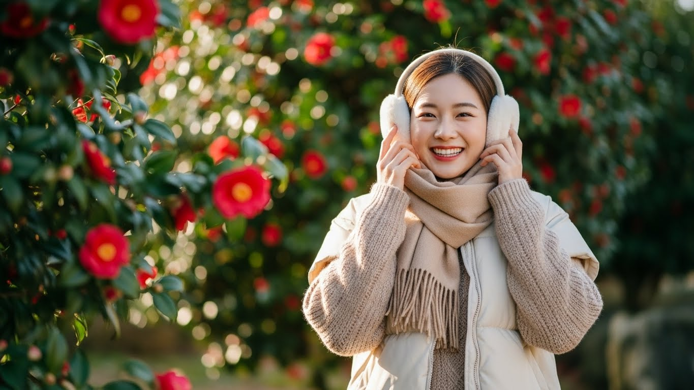 제주도의 12월은 뭐니 뭐니 해도 붉은 동백꽃과 주황빛 귤이 하이라이트죠. 배경 색감이 아주 뚜렷하고 강렬하기 때문에 옷 색상을 잘못 고르면 인물이 배경에 묻혀버릴 수 있어요. 12월 제주도 여행 옷차림에서 컬러 선택은 인생샷 건지기의 8할을 차지합니다.
