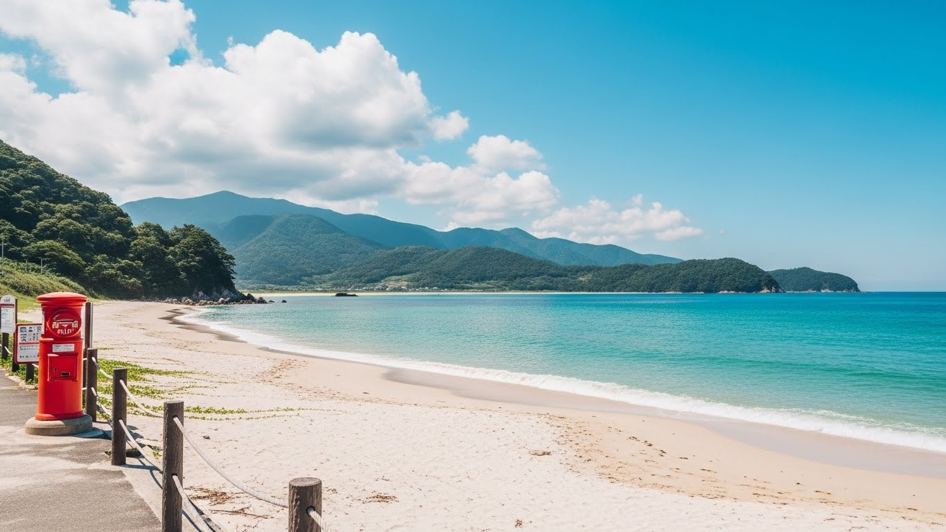 부산항을 떠나 약 1시간 10분 정도면 히타카츠항에 도착해요. 입국 수속을 마치고 나오면 가장 먼저 느껴지는 건 맑고 깨끗한 공기! 첫날은 히타카츠 주변의 자연경관을 만끽하는 코스로 잡아보았어요. 가장 먼저 가봐야 할 곳은 단연 '미우다 해변'입니다. 일본의 100대 해변으로 선정될 만큼 고운 모래와 에메랄드빛 바다색이 환상적인 곳이죠. 여기서 인생샷은 선택이 아닌 필수랍니다.