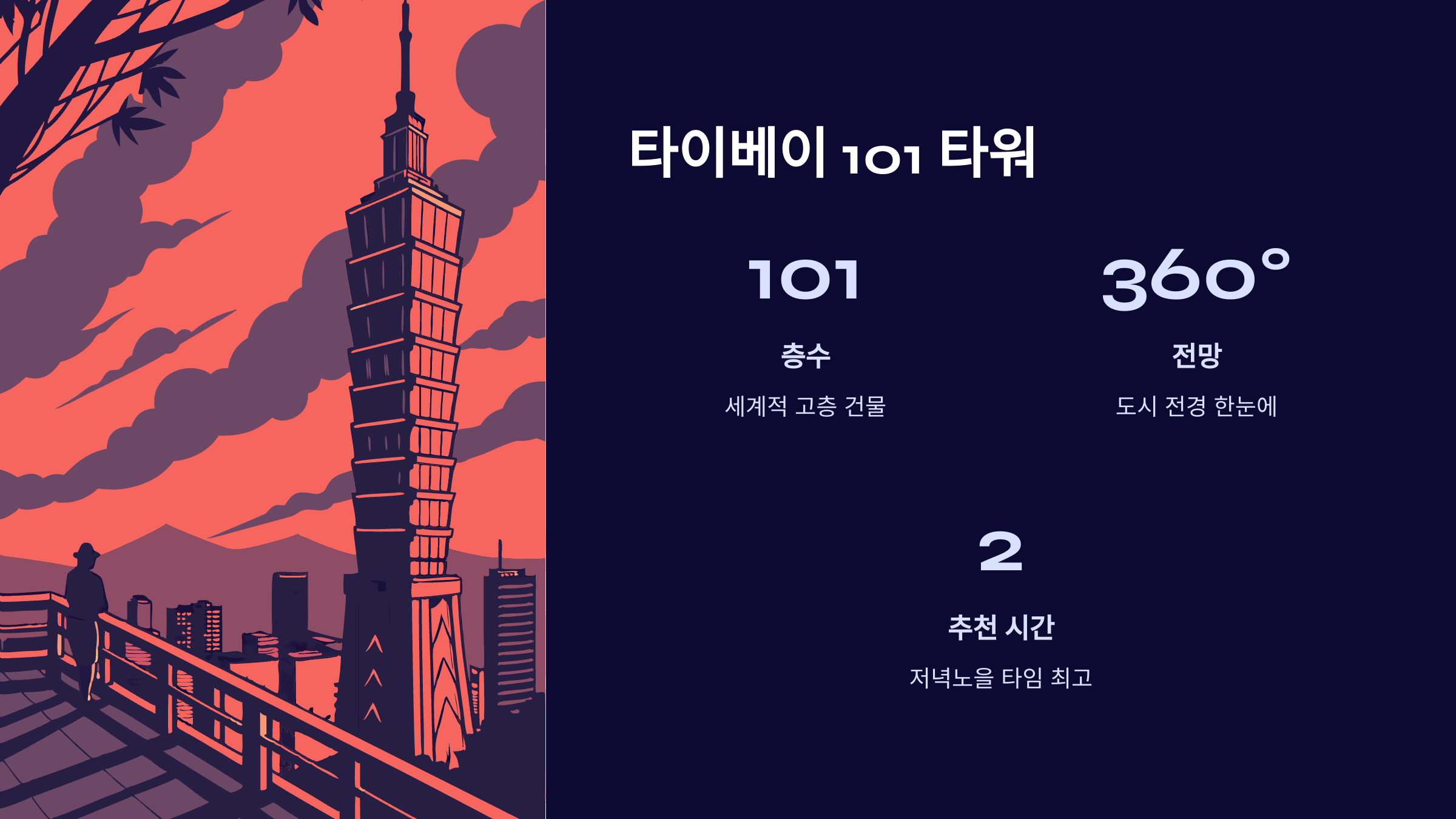 | 타이베이 101 | 고층 전망대, 쇼핑 | 오후~야경 |