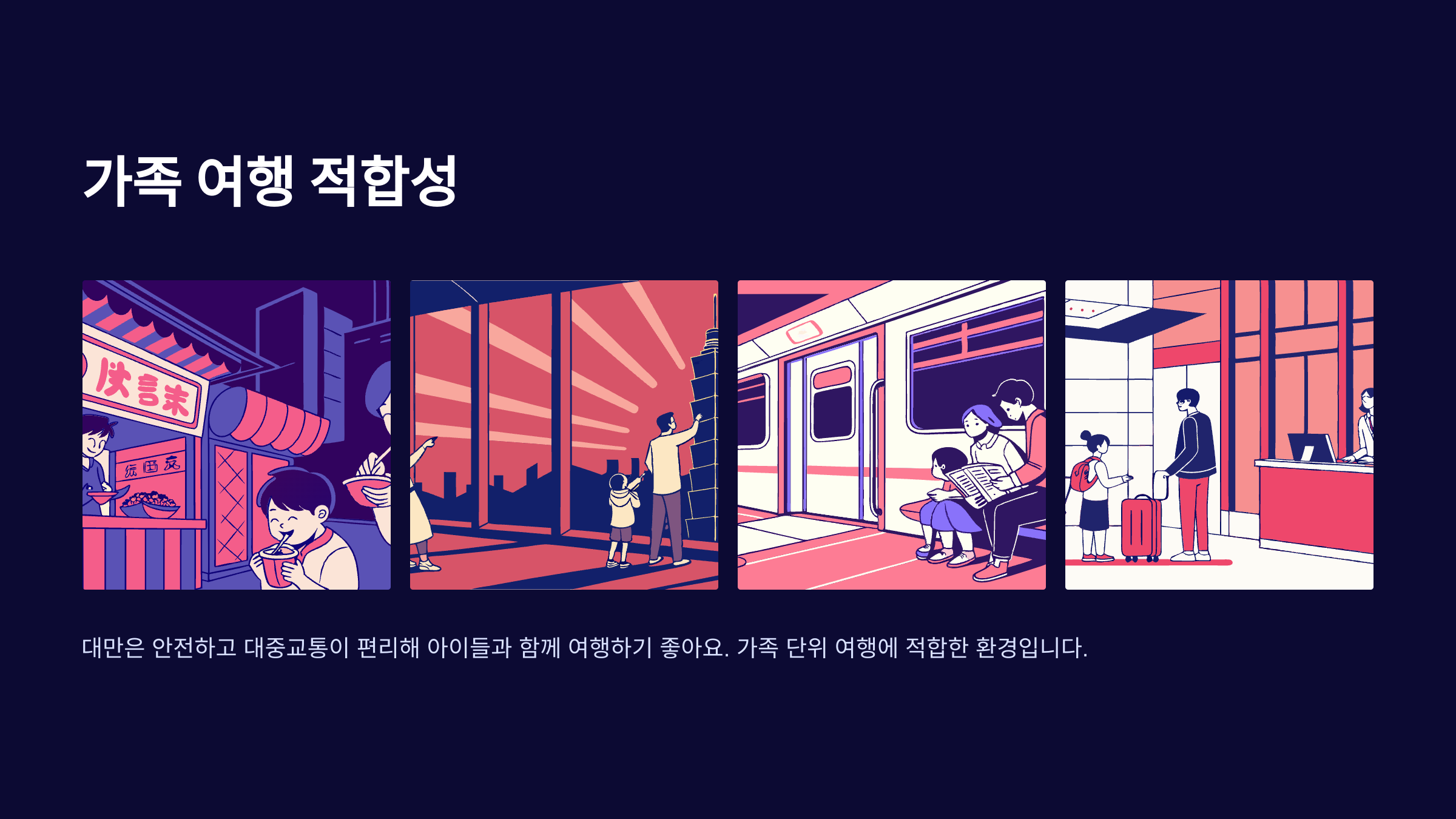 A7. 물론이죠! 대만은 안전하고 대중교통이 편리해서 아이들과 함께 다니기에도 무리가 없어요.