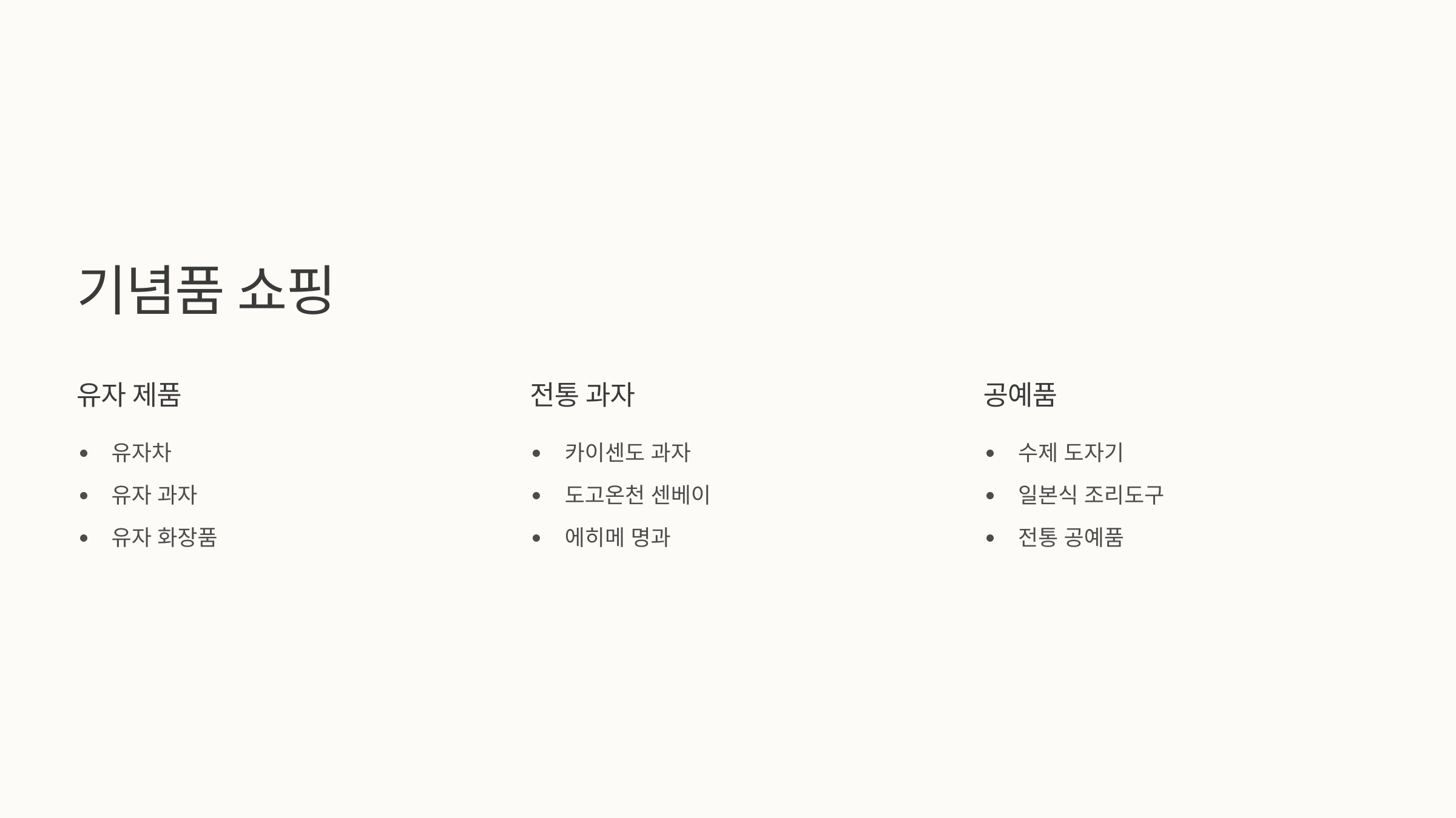 A6. 유자제품, 일본 과자, 수제 도자기 추천드려요!