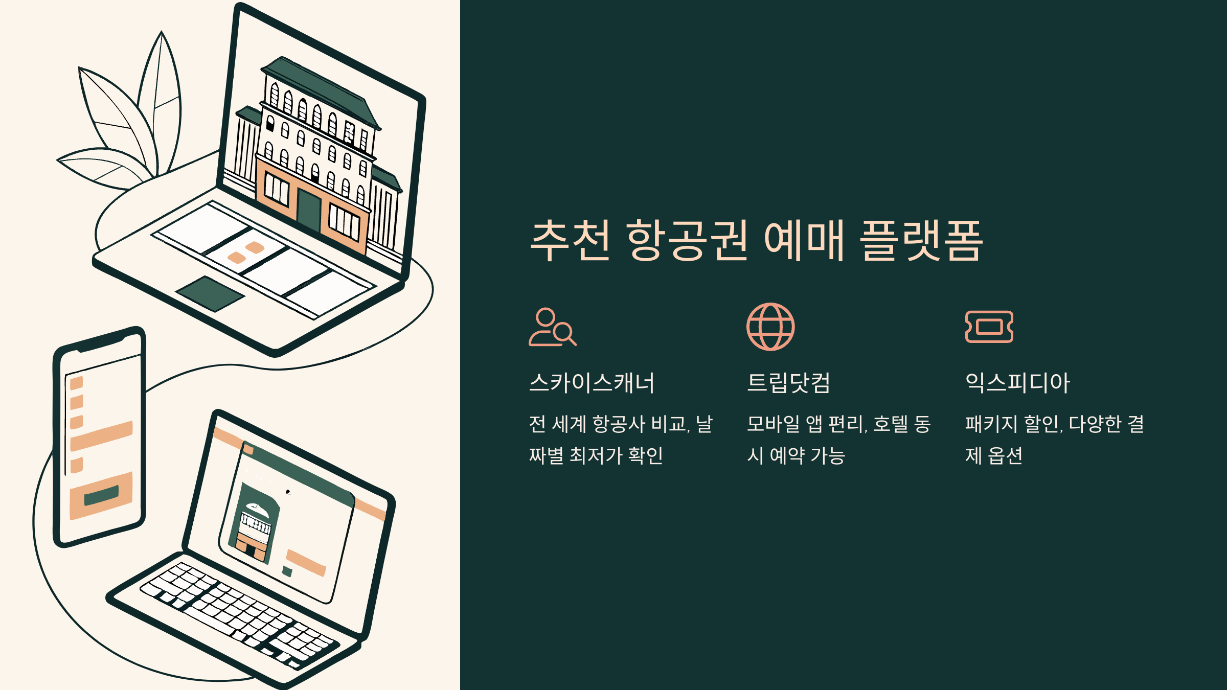 다음은 항공권을 가장 쉽게 예매할 수 있는 플랫폼과 그 특징을 소개할게요. 👇