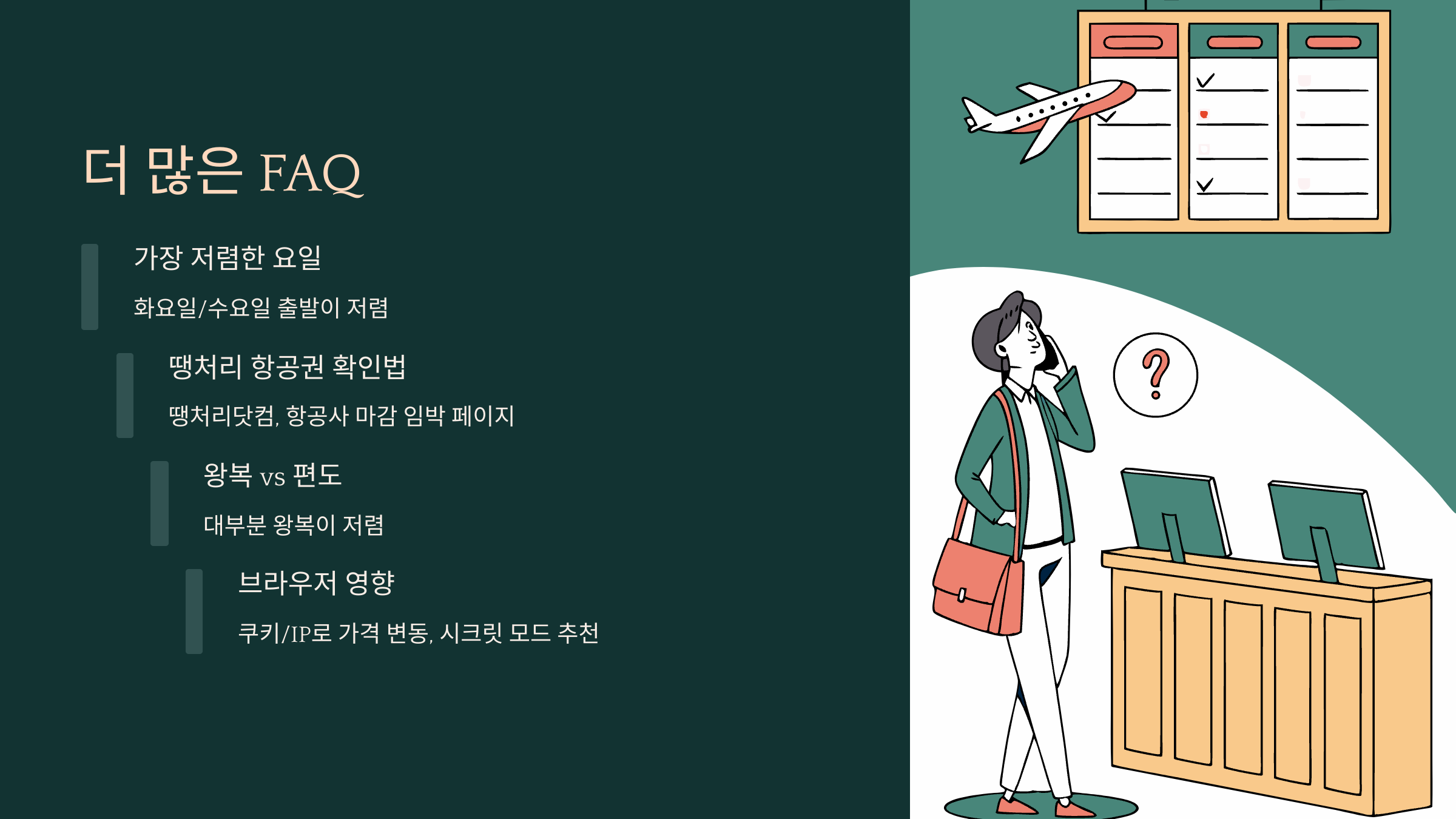 이 표를 보면 알 수 있듯이, 같은 항공사라도 예매 시점과 요일에 따라 가격이 2~3배까지 차이날 수 있어요. 제가 생각했을 때, 특가를 잡는 최고의 타이밍은 새벽 시간대예요. 검색량이 줄어드는 시간대라 서버 과부하 없이 가격이 정확하게 반영돼요.