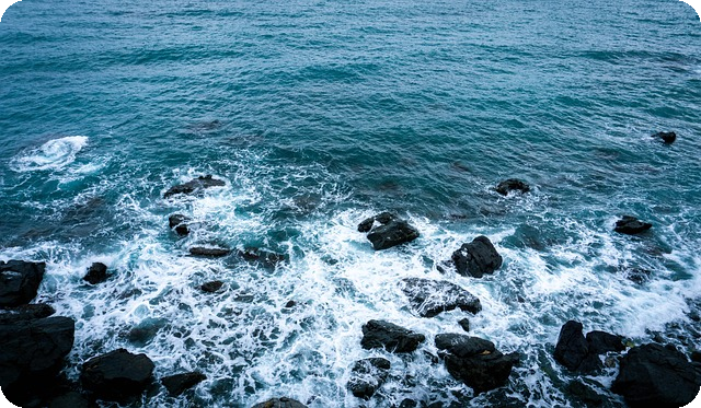 | 절벽과 파도 | 깎아지는 벼랑에 부딪히는 하얀 파도 |